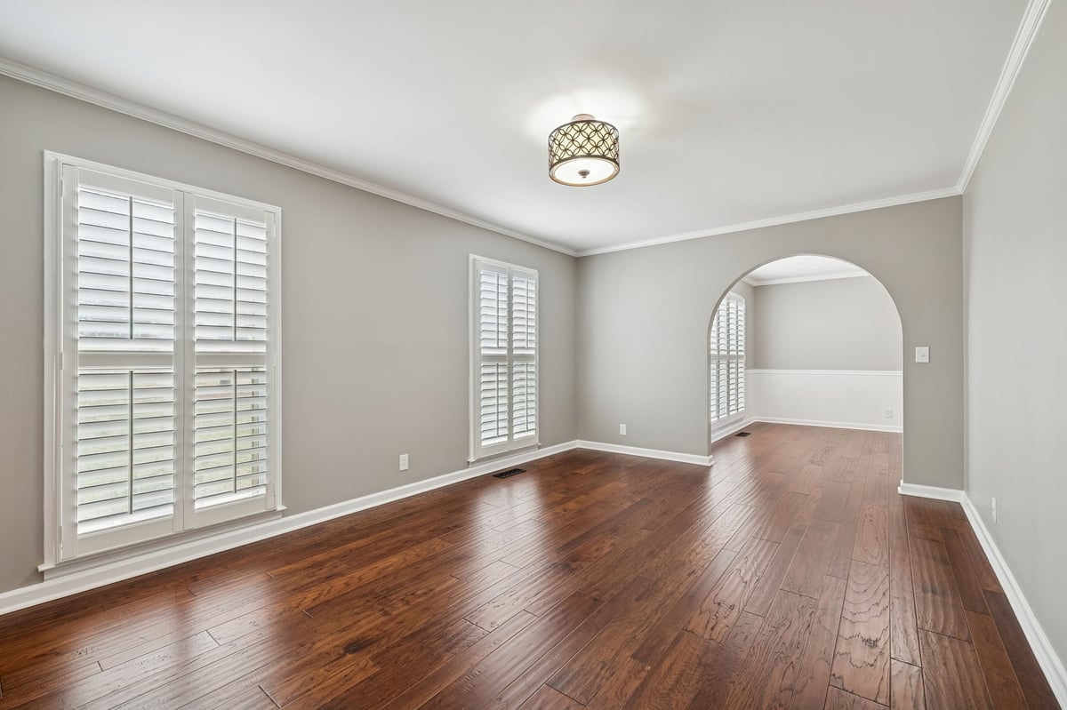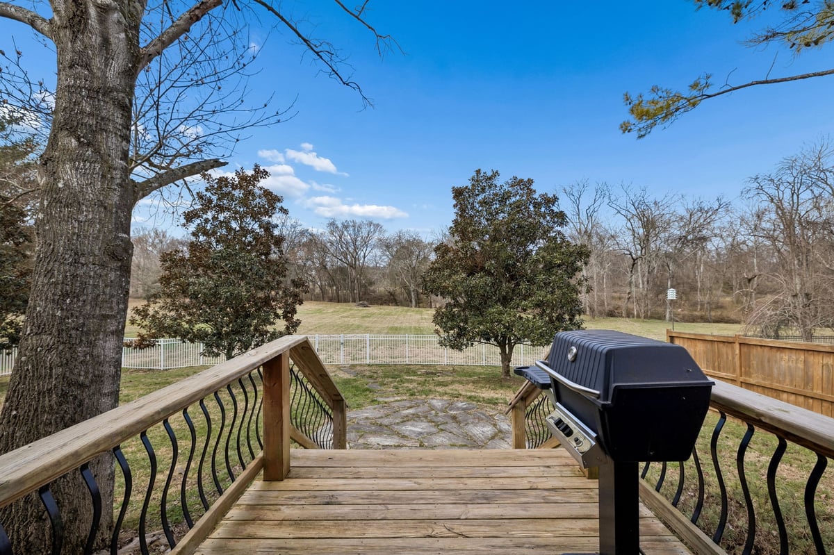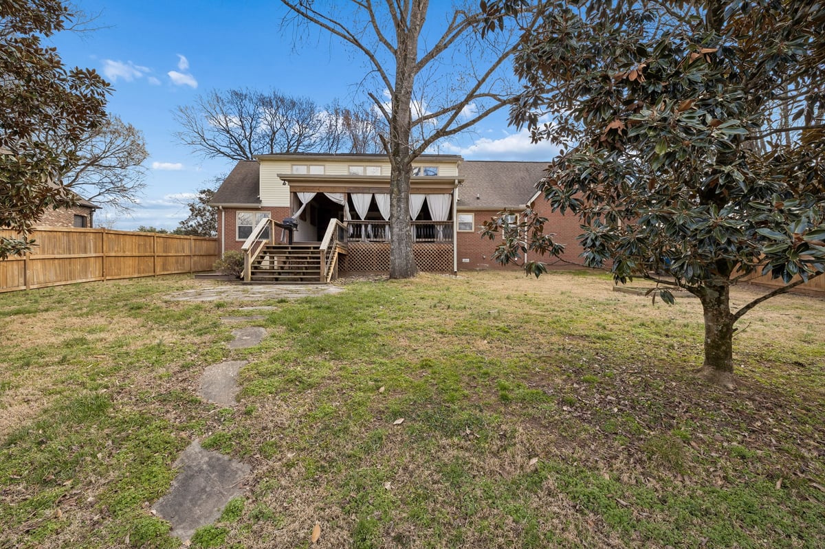 Large family home with creek behind yard* engineered + oak hardwood* tile* den with fireplace & B-I bookcases (no logs present)* formal LR and DR* oak entry staircase* fenced backyard* huge L-shape bonus room* primary bedroom downstairs with 2 W-I closets* FRESH PAINT AND NEW CARPET* plantation type shutters, chairrail & crown mldgs* recessed lighting* white cabinets& granite tops* tile backsplash* arched doorways* upstairs consists of office, 2 bedrooms, bath, bonus rm + small flex room* double concrete drive* HUGE sloping back yard down to creek* 23x16 covered deck overlooking serene back yard with OUTDOOR GAS FIREPLACE providing a great place for relaxation in the afternoon,coffee in the morning and entertaining on weekends* owner/agents