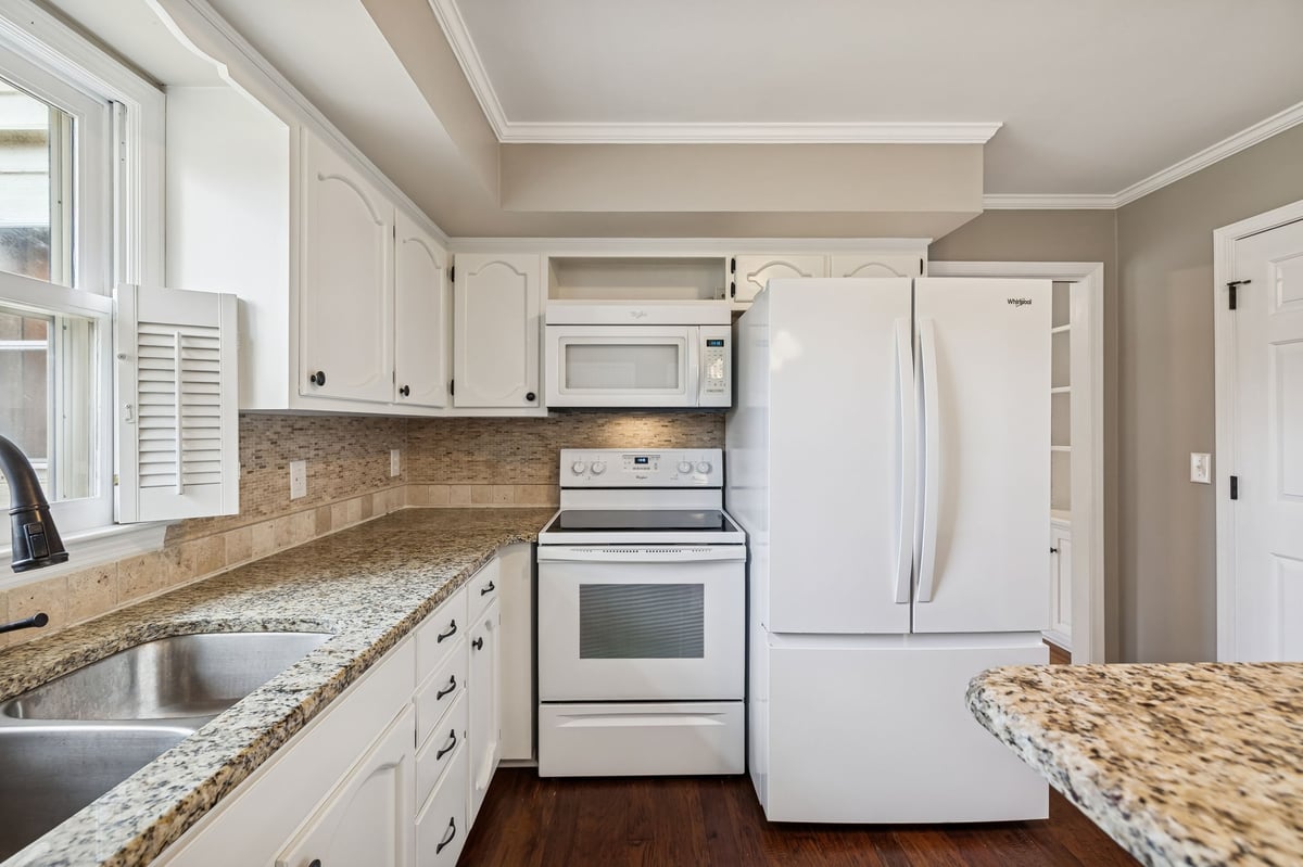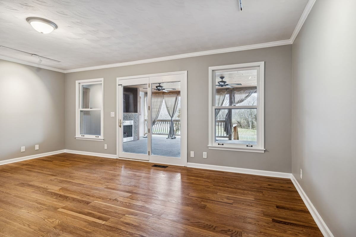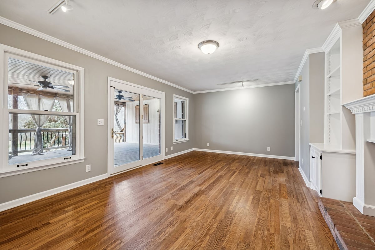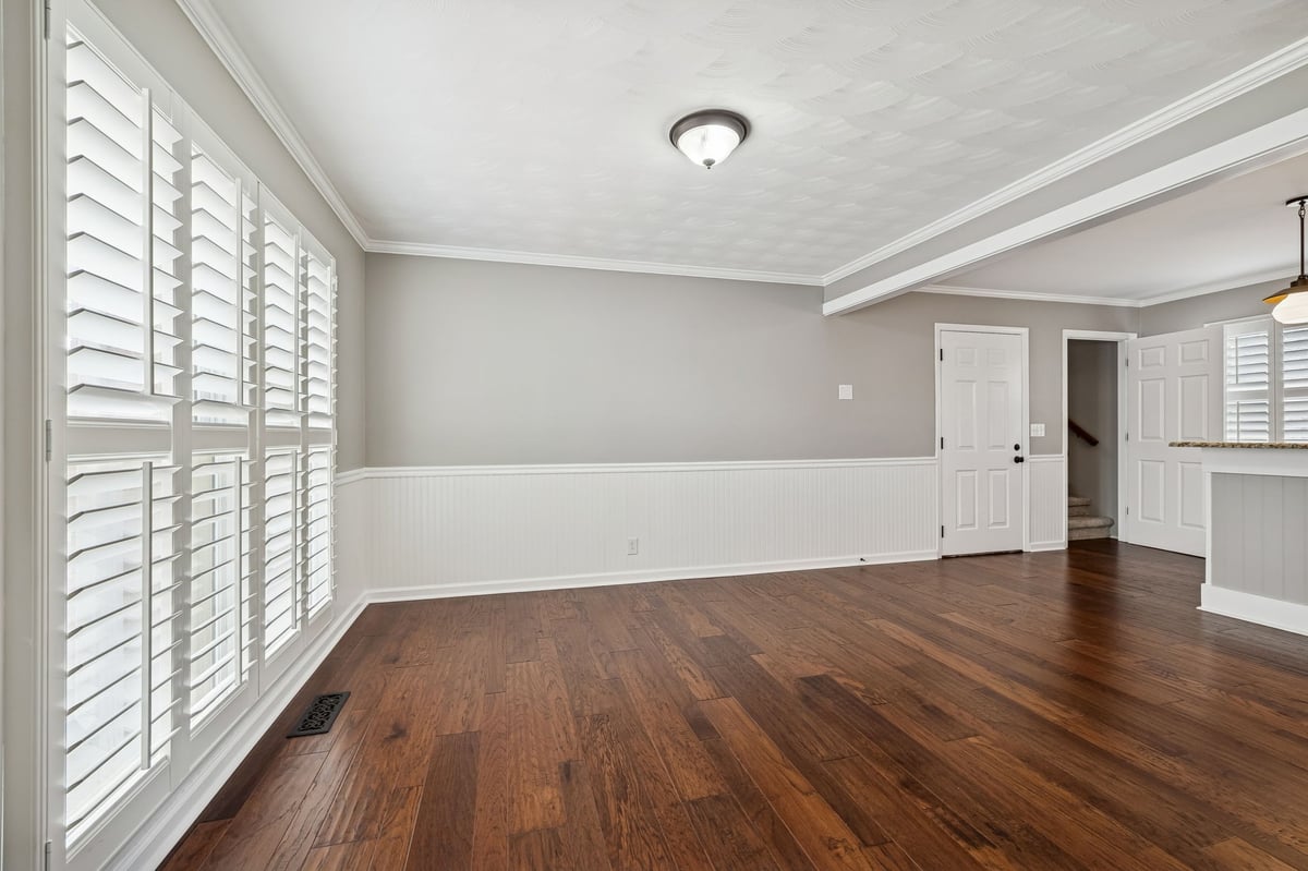Large family home with creek behind yard* engineered + oak hardwood* tile* den with fireplace & B-I bookcases (no logs present)* formal LR and DR* oak entry staircase* fenced backyard* huge L-shape bonus room* primary bedroom downstairs with 2 W-I closets* FRESH PAINT AND NEW CARPET* plantation type shutters, chairrail & crown mldgs* recessed lighting* white cabinets& granite tops* tile backsplash* arched doorways* upstairs consists of office, 2 bedrooms, bath, bonus rm + small flex room* double concrete drive* HUGE sloping back yard down to creek* 23x16 covered deck overlooking serene back yard with OUTDOOR GAS FIREPLACE providing a great place for relaxation in the afternoon,coffee in the morning and entertaining on weekends* owner/agents